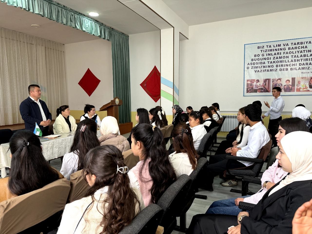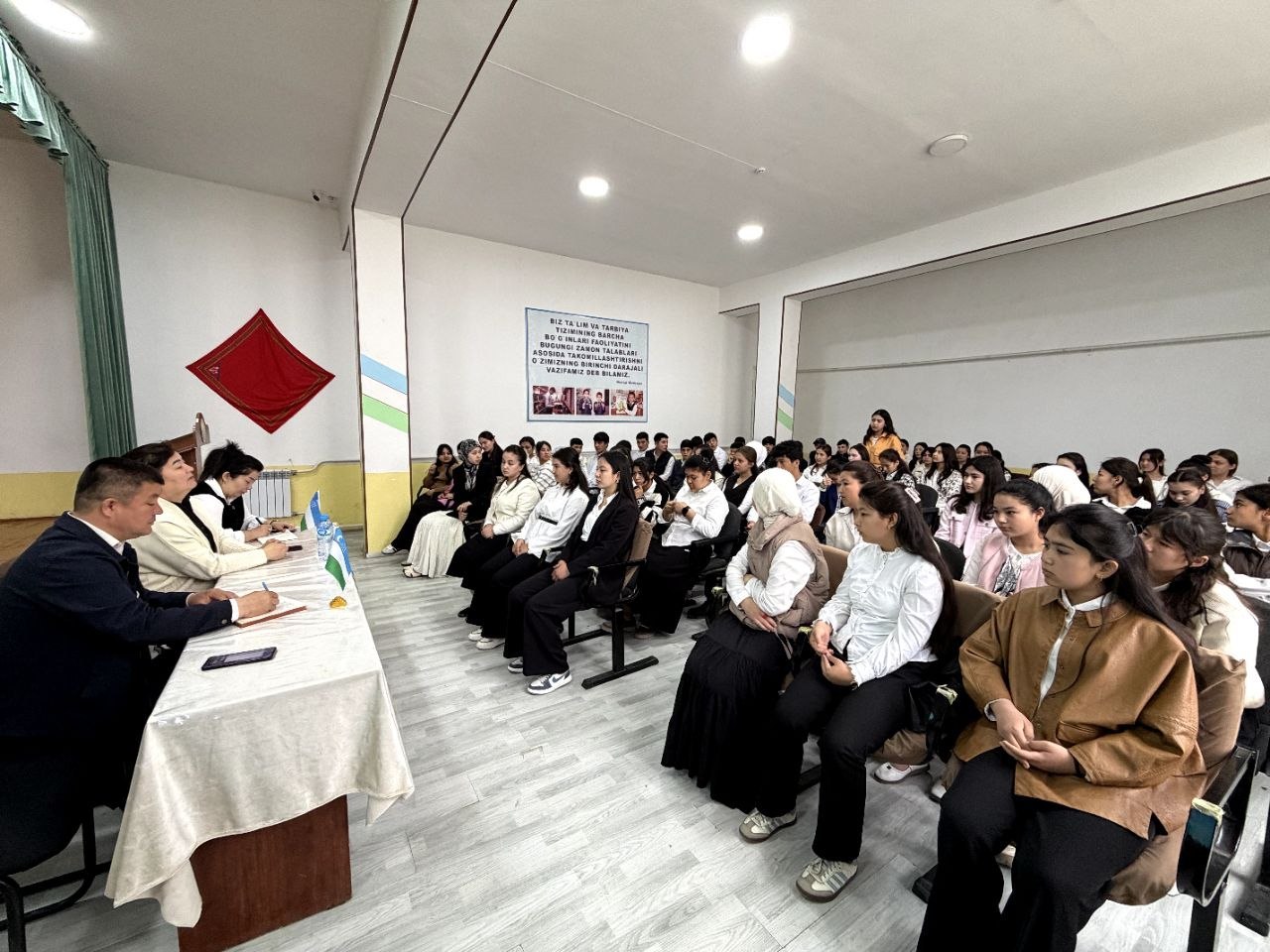 Mazkur tadbirda tuman maktabgacha va maktab ta’limi bo‘limi boshlig‘i hamda maktab masʼullari ishtirok etib, yoshlar bilan yuzma-yuz muloqot olib bordi.